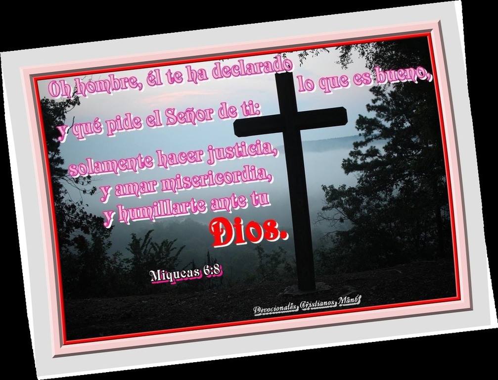 Miqueas 6:8 Oh hombre, él te ha declarado lo que es bueno, y qué pide el Señor de ti: solamente hacer justicia, y amar misericordia, y humillarte ante tu Dios.